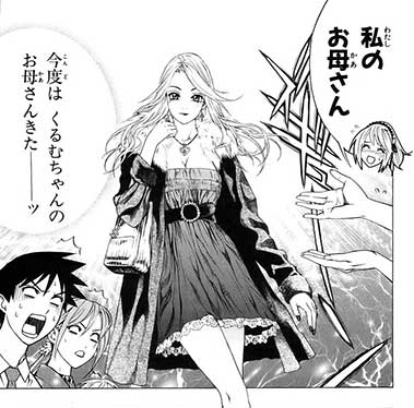 I was going to scan in a few pages from my copy of volume 9, but then I decided to see if the raws were easy to find. They are, so I just clipped out some samples and resized them. Kurumu’s mother, Mizore’s mother, Kyou-chan.